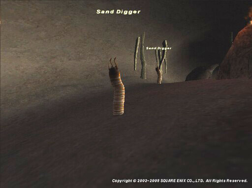 次は、流砂洞、ジラートミッション「ミスラとクリスタル」で訪れる場所にいるミミズ、Sand Diggerが落とす「古の岩塩」を取りに行きました。手伝ってくれたのは、R猫さん。